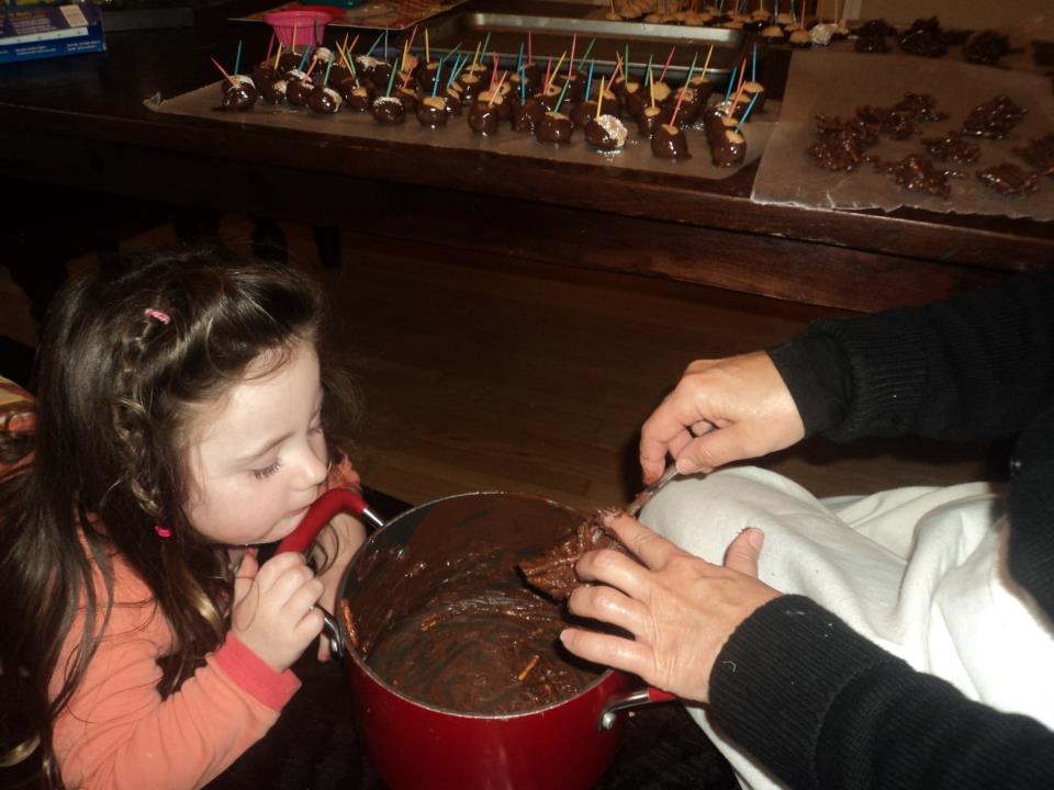 A couple of the activities that helped prepare us for and get us in the holiday spirit were making Christmas cookies with Grandma (Jen's) in Temecula. They also made buckeye drops which are peanut butter cookie doe (I think) dipped in chodolate. Zoe was especially interested in the dipping in chocolate part.